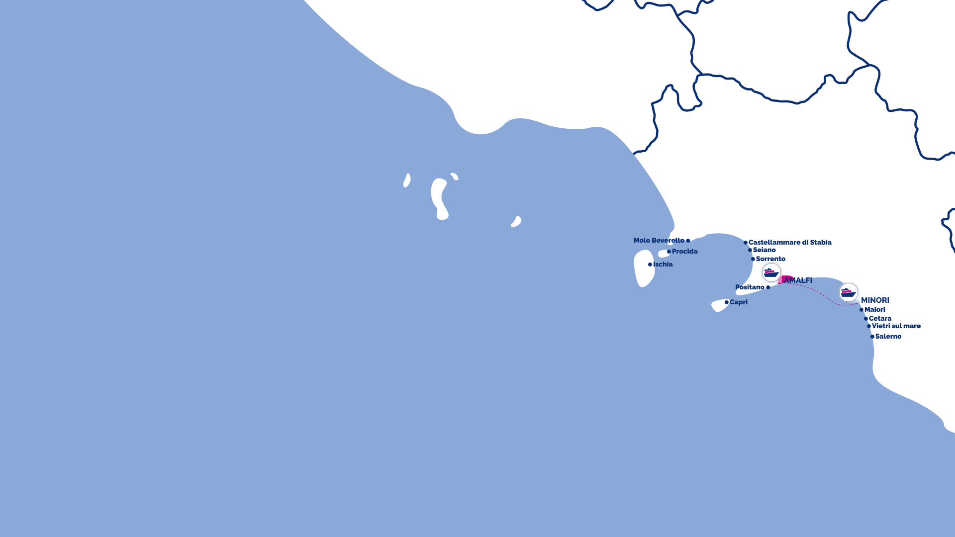 Die Strecke Minori Amalfi wird von den Reedereien NLG und Travelmar bedient. Die Überfahrt dauert durchschnittlich 10 Minuten. Wir empfehlen, sich eine Stunde vor der auf dem Ticket angegebenen Zeit an der Anlegestelle einzufinden und einen gültigen Ausweis mitzuführen.